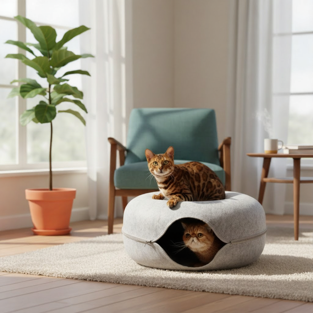 Podaruj swojemu kotu ciepło i komfort, na które zasługuje, dzięki naszej Kojącej Jaskini typu Donut.