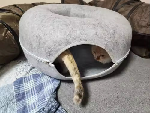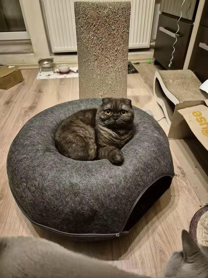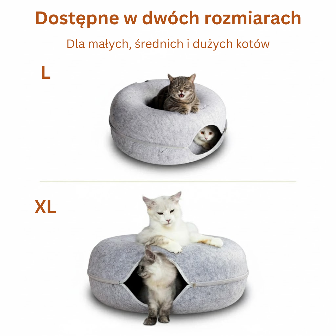 Tunel jest na tyle duży, że zmieszczą się w nim co najmniej 2 dorosłe koty — a nawet Maine Coon — aby bawić się, chować i wygodnie spać w środku.
