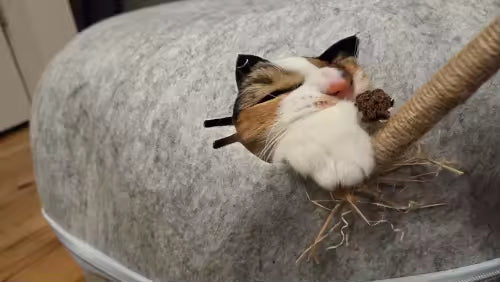 Nasza filcowa jaskinia, odporna na zadrapania, wytrzyma nawet najbardziej energiczne sesje zabawy z najbardziej wymagającymi kocimi towarzyszami.