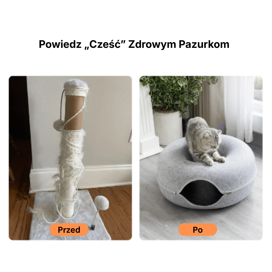 Koty uwielbiają drapać, a jaskinia "A-kuku" zapewnia im wyznaczone miejsce do wbijania pazurków. To praktyczne rozwiązanie, które pomaga ochronić Twoje meble przed zniszczeniem.